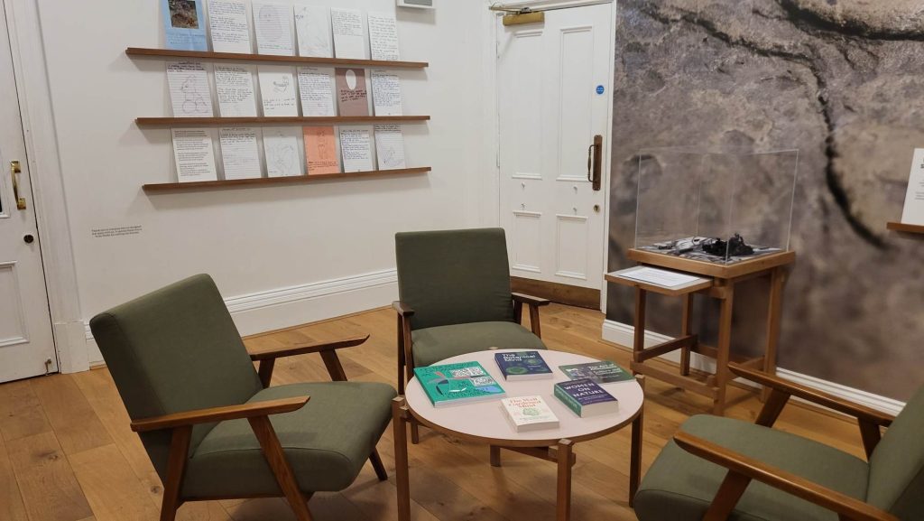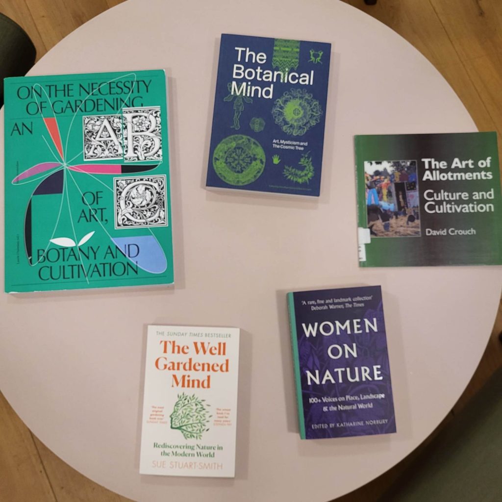 On the the table, a selection of books chosen to reflect the themes of the project such as ‘Women on Nature’.
