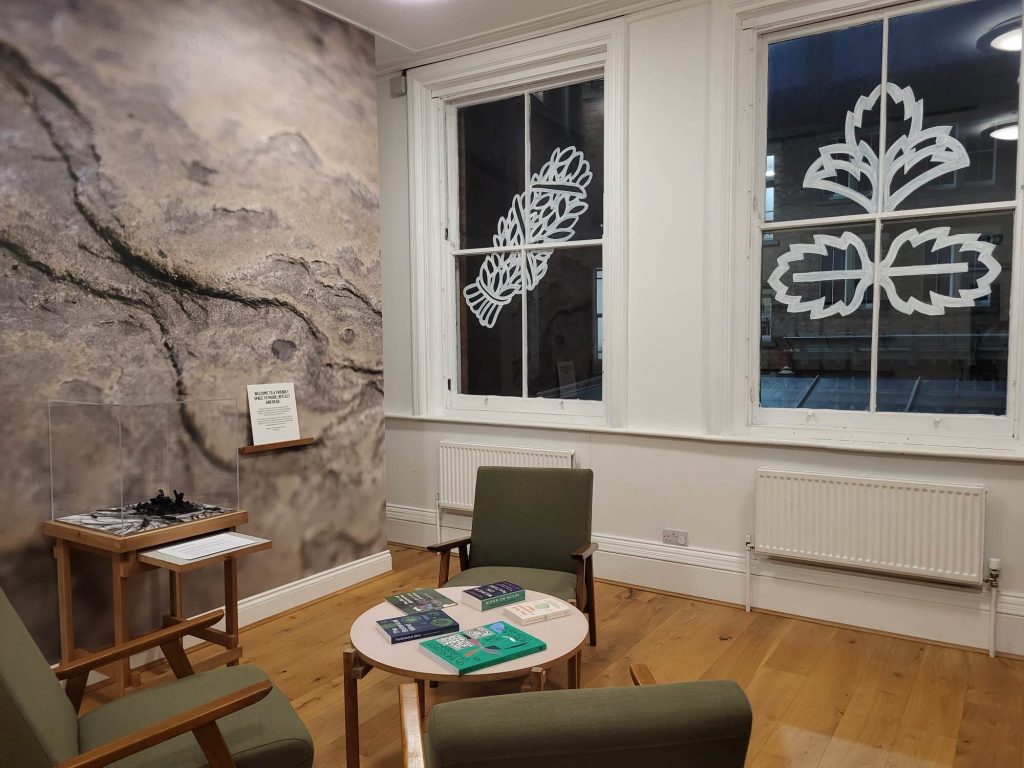 Within the alcove, visitors could sit and listen to my soundscape, ‘A Year in the Life of the Allotment Garden, 2021-2022’, a sound diary, documenting the comings and goings of this peaceful and productive space for community groups and artists.