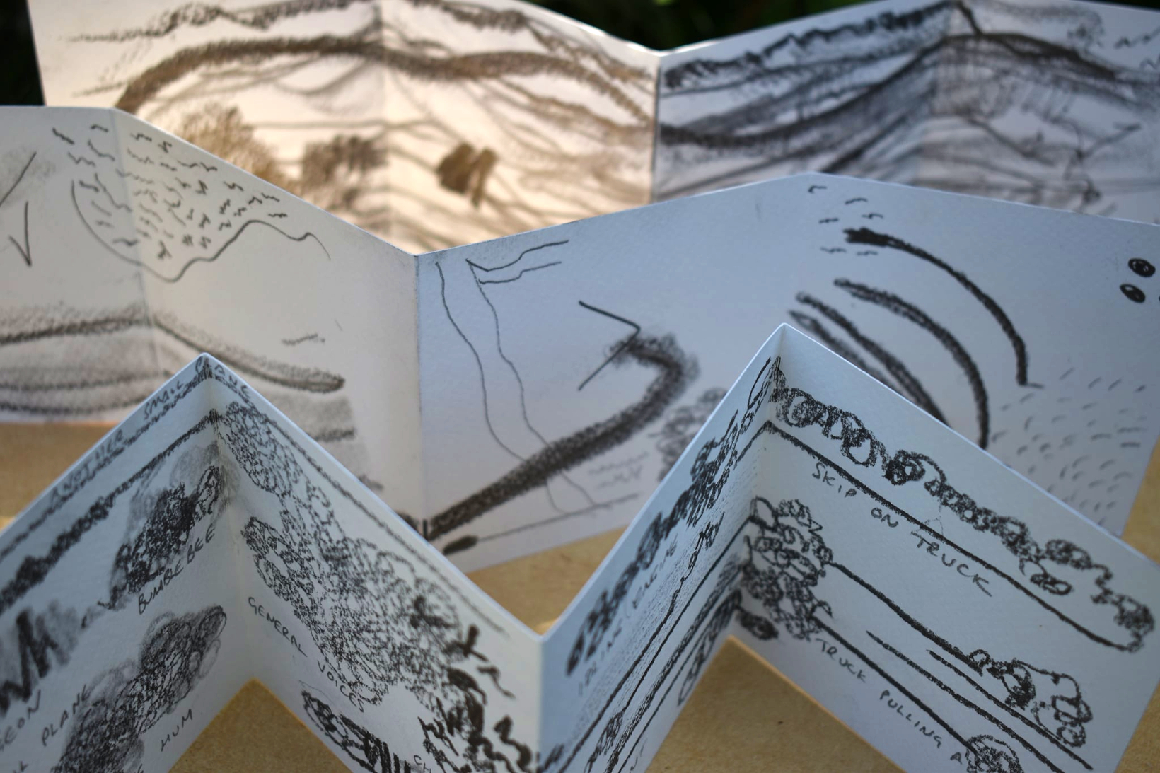 After making some concertina sketchbooks, they created a ‘library of sounds’, represented through a series of marks, using pencil and graphite sticks.
