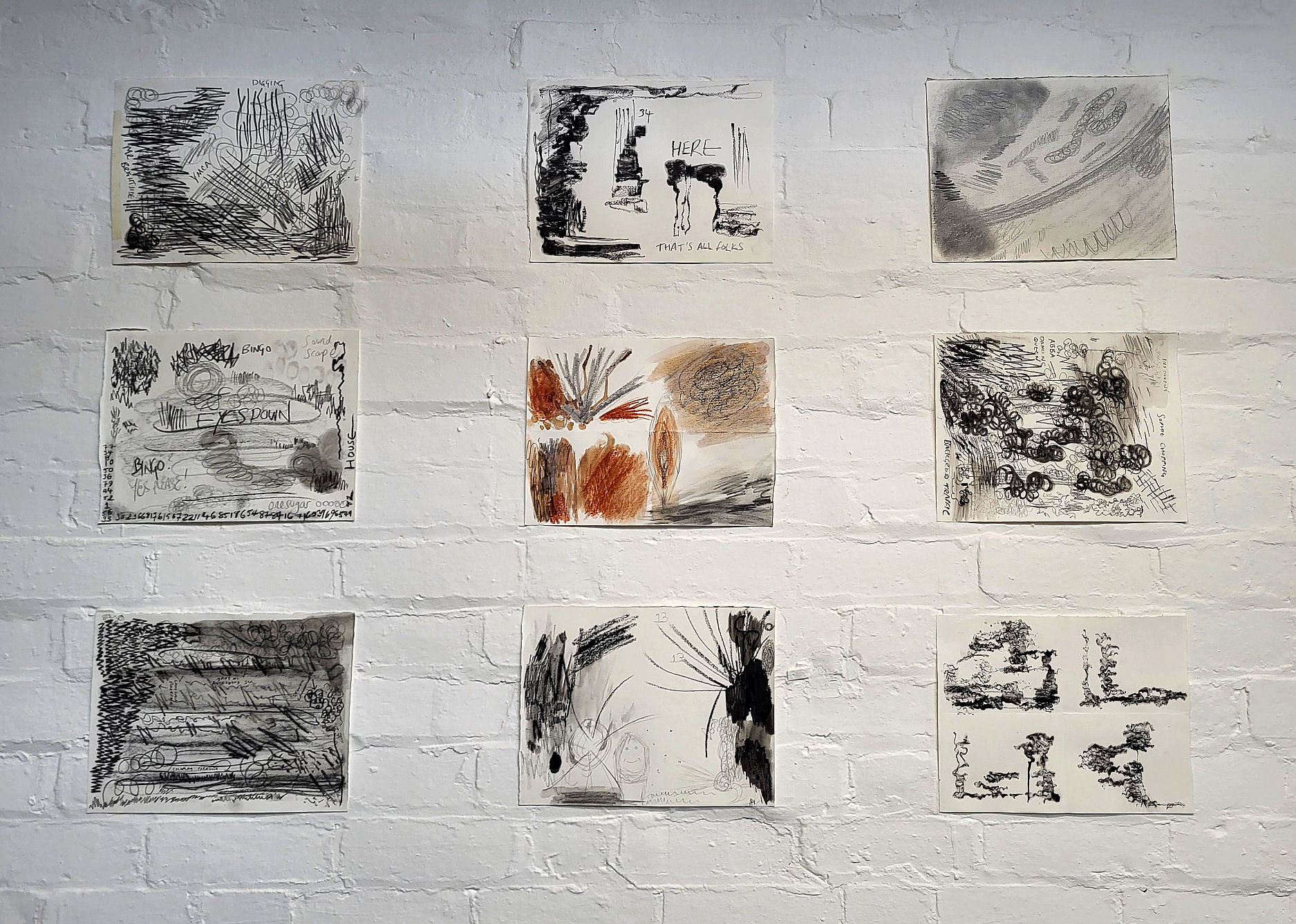 Participants’ Small-Scale Sound Drawings, Graphite, Wax Crayon and Ink on Paper