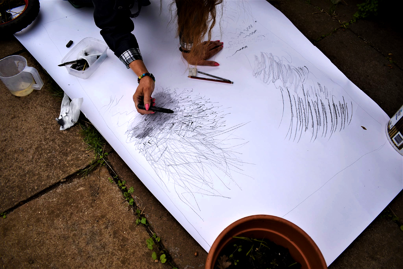 This series of workshops explored mark-making and documenting ‘sense of place’ through abstract drawing, in both large and small scales.