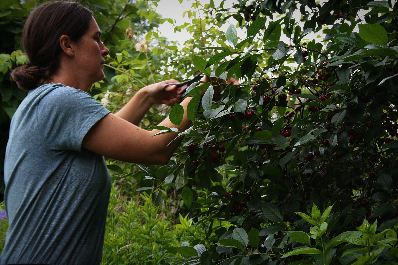 Sophie pruning the bushes. Part of her improvised gardening performance to inspire the large scale and time-based drawing workshop
