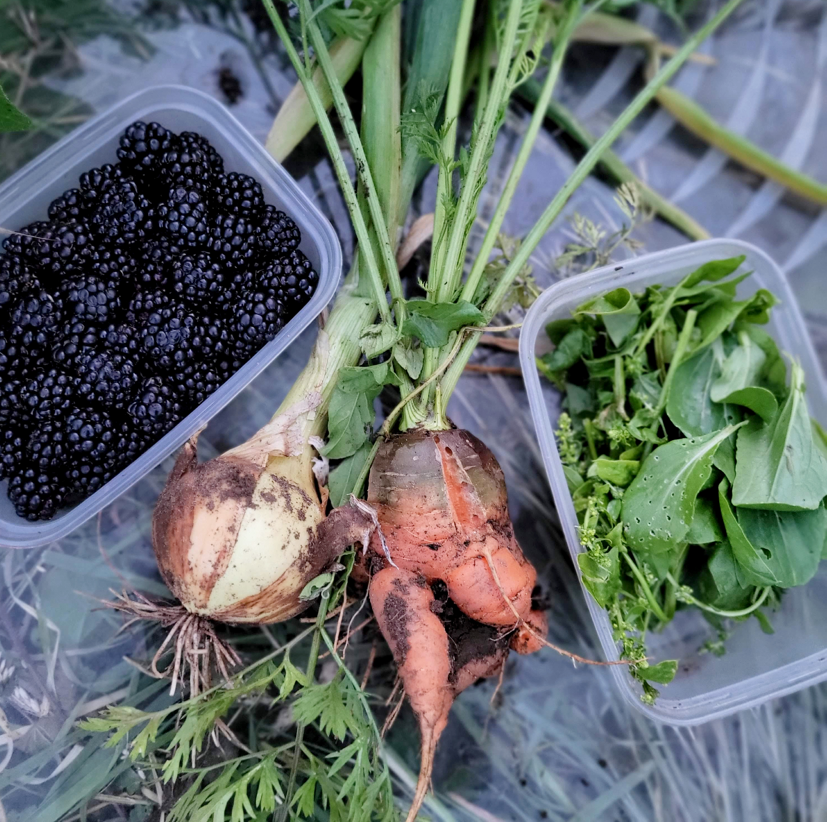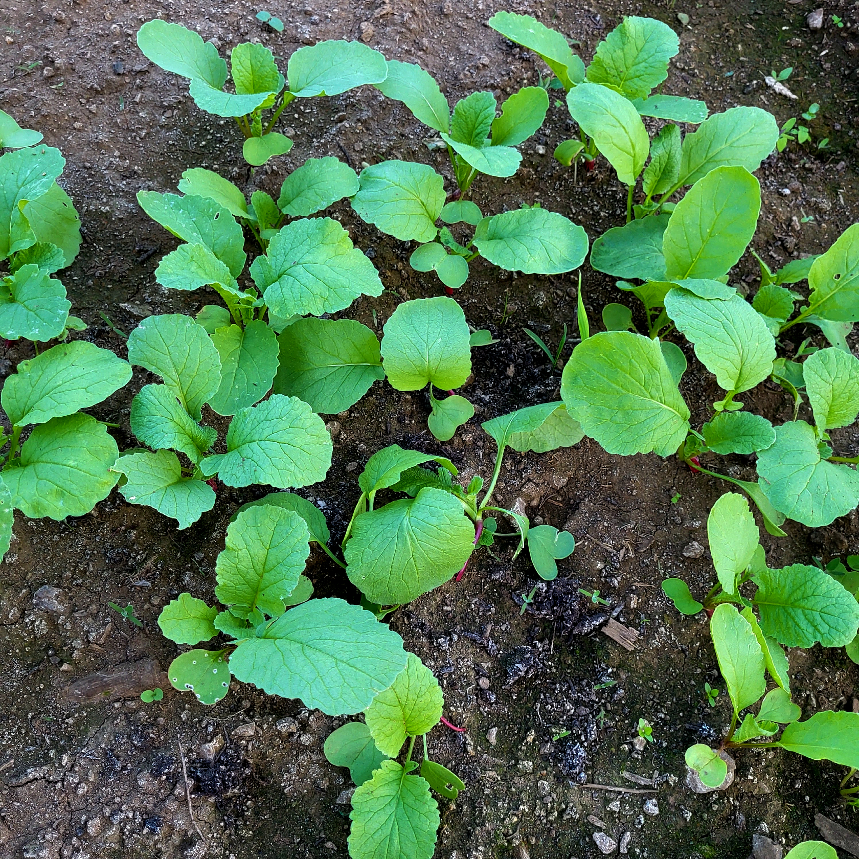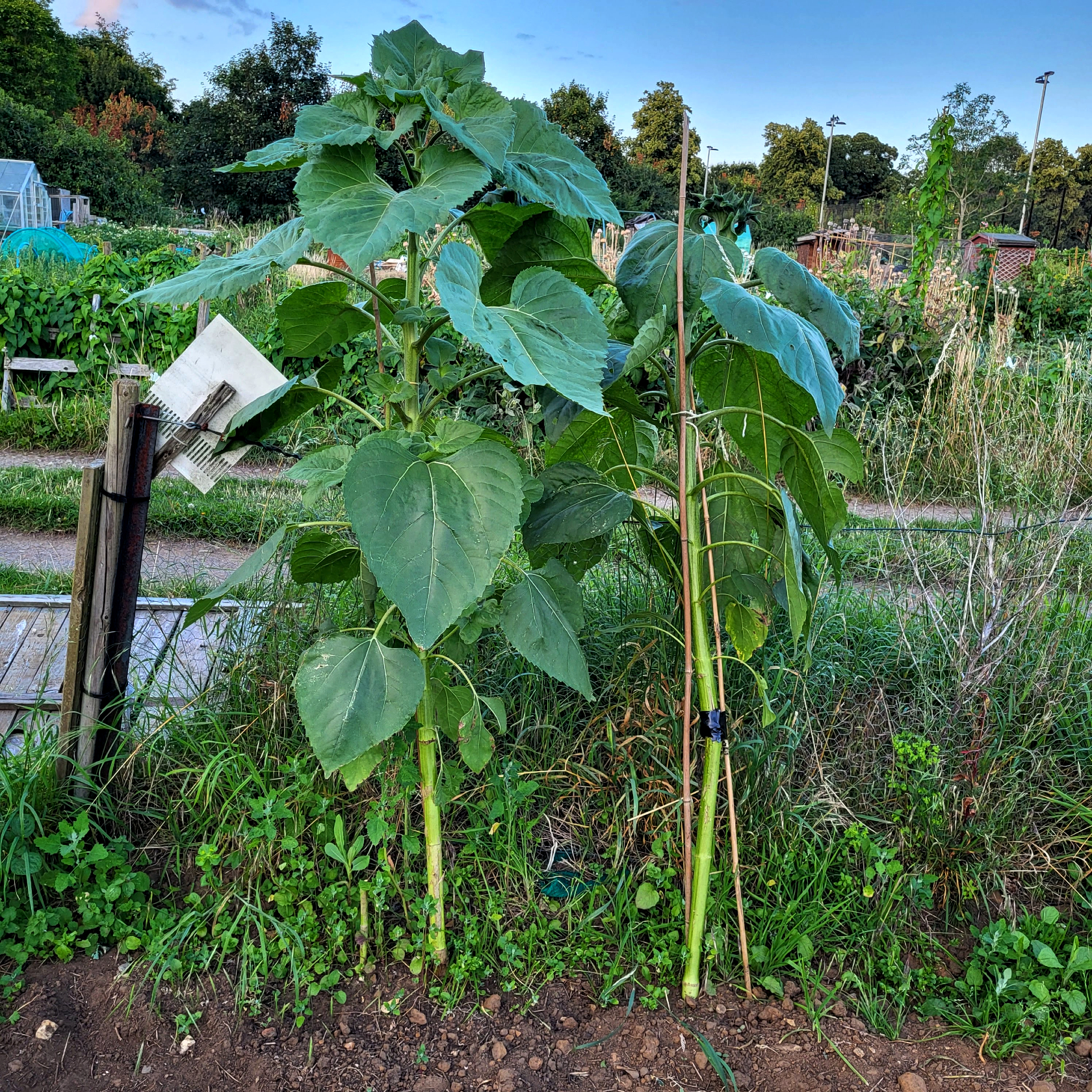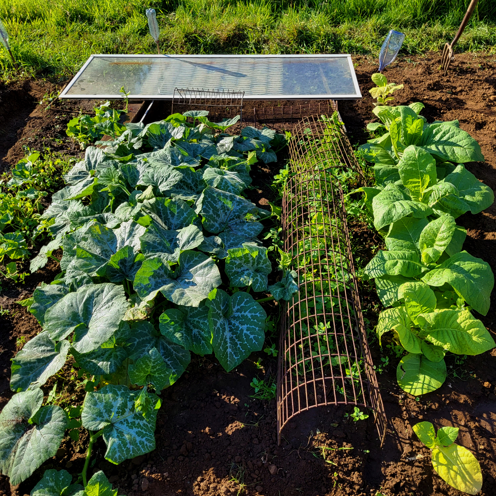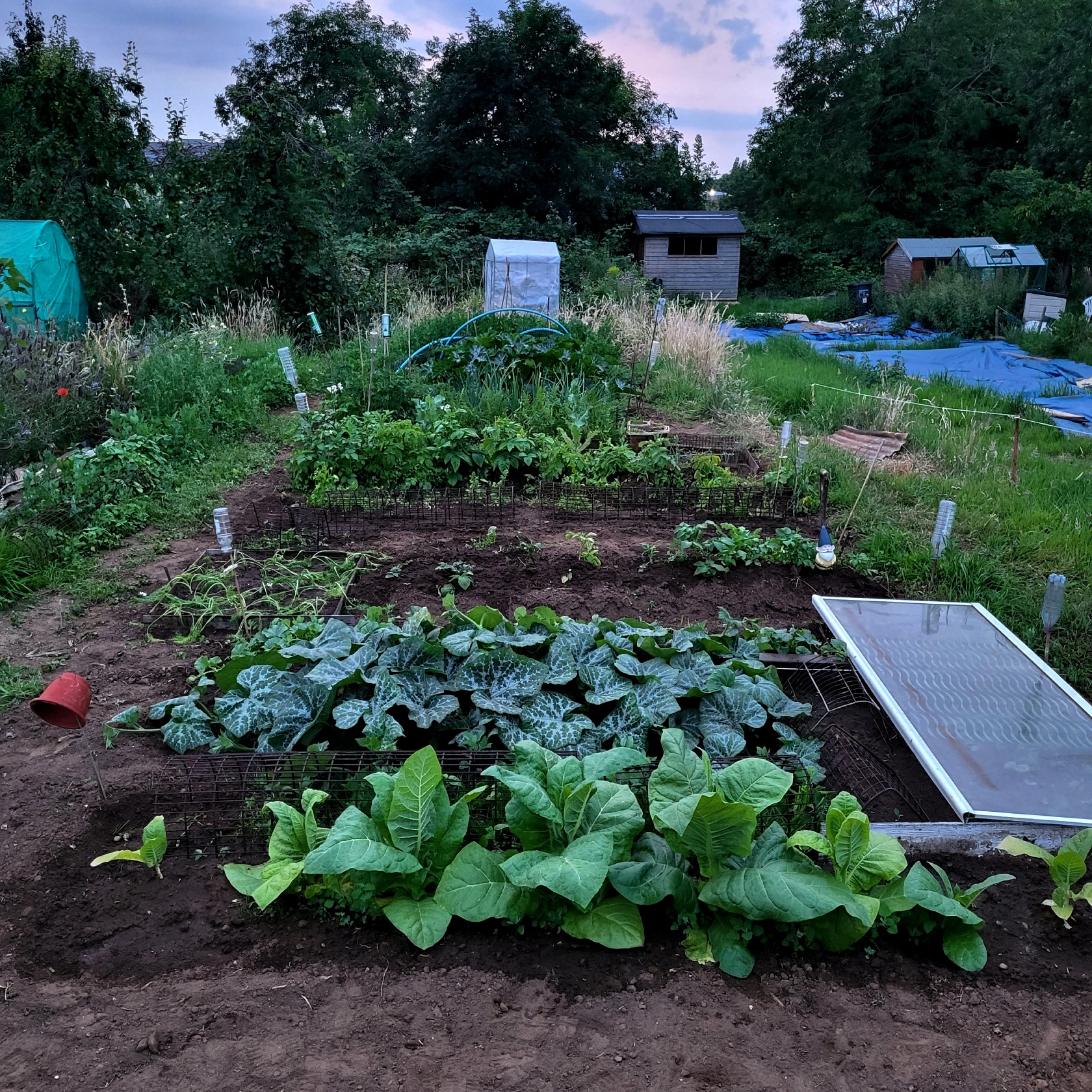 The new neighbours are laying down plastic to supress the weeds, while the sunflowers are having a growth spurt. The tobacco plants are settling in, the carrots, leeks and onions look verdant, and the first round of spinach is beginning to bolt.