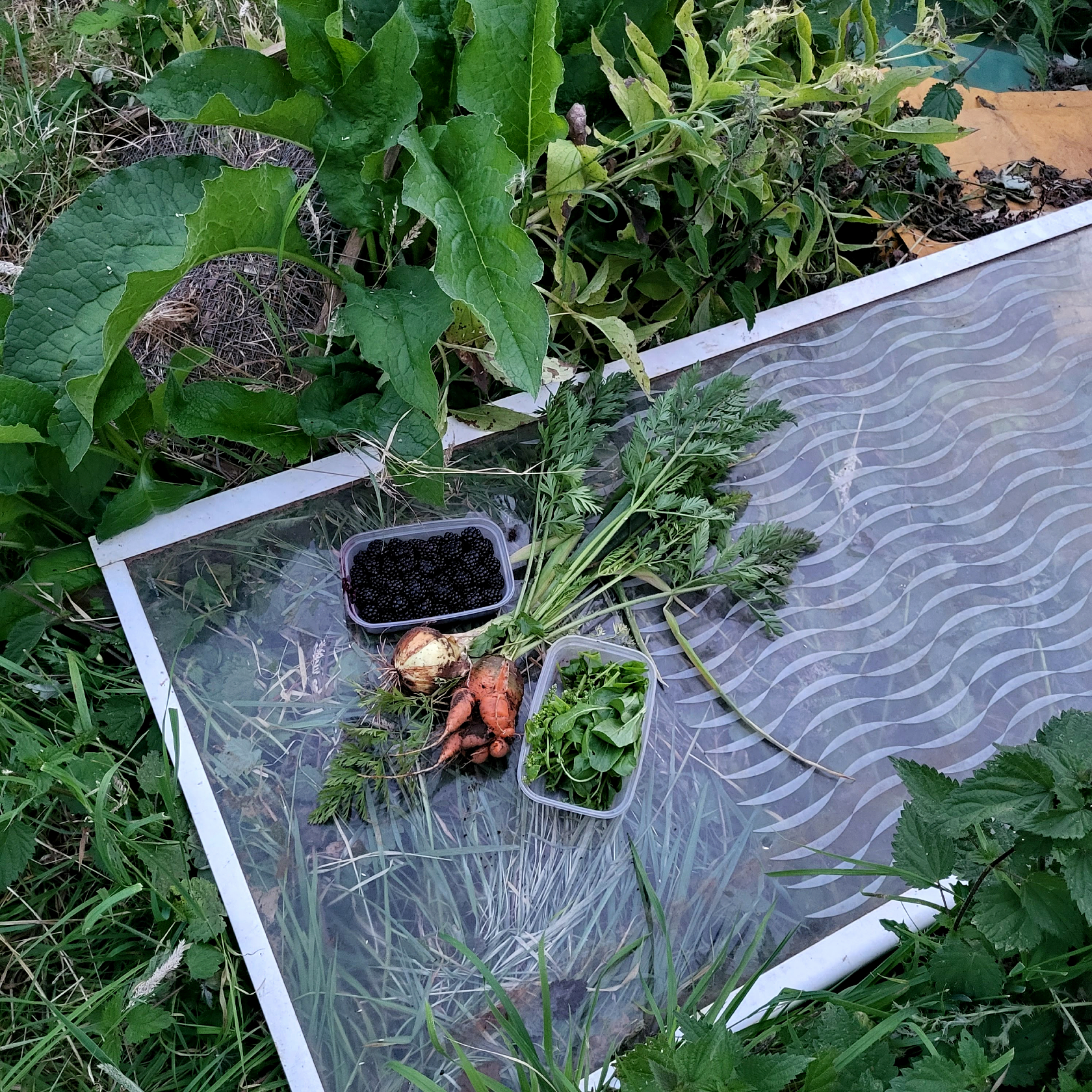 In 2023, along with my partner, I took on an allotment. It had been a long-held dream; to have a patch of greenery, away from the noise and bustle of the urban environment, on which to rest, breathe fresher air, be with and learn from nature and to of course, grow food. I began blogging about the experience, sharing this only with friends on social media. I didn’t intend for it to become an art project, so at first, the text was colloquial, but post by post, there was a gradual shift in my language. A cross-over began to take place, from documenting the allotment for social sharing purposes only; to documenting, photographing and describing it to capture my experience of it, its ‘Sense of Place’, and how I revered it and felt within its calmness. All of this related to my art practice, which explores Diarizing, Place Attachment, Sense of Place and Psychogeography. Later, I began reflecting on the act of gardening itself.  In my blog post ‘Being In and Out: A Conversation’, I state (when contemplating my documentation of the annual summer holiday) ‘But then I am not one without the other; I am not Emma without being an artist. Being an artist is being Emma. So, whenever I’m away, I’ll take photographs, make sound recordings or draw. It’s a compulsive act; recording the experience of ‘being in’ and ‘experiencing’ a place.’ In Part One I chart the allotments’ development through the first twelve months; our attachment to it, and the ‘art and craft’ of gardening, such as space design, crafting plant supports or compost heaps. This experience of ‘being in’ and ‘experiencing’ a place, also ties in with a project I delivered for a residency in 2022, which I called ‘Living In the Outdoors’; which so happened to take place on this very set of allotments, and inspired the decision to apply for an allotment of our own. For the ‘Living In the Outdoors’ project, we explored just that. On the allotment used for the residency, we made our own charcoal from wood found on site, which we used to draw the surrounding trees, and we cooked our Jacket Potato lunch in the wood bin. We view our allotment as an extension of home and have developed a deep connection with it. We ‘live’ there. We rest with flasks of tea and coffee, we stay until the last of the light, and on into the night, we build temporary shelters with tarpaulin, and chat to our neighbours, who are robins and foxes. The ‘art’ is integrated with our daily life and once again, the act of being an artist and being myself is inseparable. Chapter One: June 2023 Visiting our allotment for the first time. Lots of ideas and allotment dreams.         Chapter Two: July 2023 Sharing the blackberry crop with a local resident. Chapter Three: September 2023 Working out allotment borders, digging over soil, shifting coverings, late plantings of gifts from a fellow allotmenteer, first stage of sorting various wood piles and an assortment of mysterious buried metal items. Chapter Four: April 2024 We’ve arrived to start developing the plot earnestly. Our activities included  Discovering a Grass Snake underneath a sheet of metal, having tea and coffee for two, working out the logistics of greenhouse 'putting up-ering', playing houses in it and, planting seeds. These are possibly Chilli's. Unbeknownst to us, there’d been an allotment inspection in March (by the company that the council pays to do these things) just before we’d decided that we must get cracking on with the plot; although a lot of seedlings were growing behind the scenes. Let's just say we weren't happy with our inspection report.  Chapter Five: May 4th 2024 After recovering from our 'Threat of Eviction' notice, we attacked the allotment with vigour. We uncovered more metal items (and a brick) from the earth and constructed our first bed, containing carrots and onions.  Seeds have been arranged and labelled. We've trampled down an area around the greenhouse (knowing that it will soon sprout forth), and admired its resplendence. We looked across from the greenhouse and admired next doors' plot, they are developing an orchard. Chapter Six A : May 18th 2024 Transformation Day. Clearing, tidying, digging. Clearing, tidying, digging. Clearing, tidying, digging. Oh, and the carrots, onions and potatoes are on their way! Chapter Six B : May 18th 2024 Transformation Day continued.  Sorting through jaggedy wire mesh, assorted items of wood, broken glass, torn tarpaulin, what to keep, what to throw. Created a simple corner compost heap for all the grass clumps. Hoed, weeded.  Made a 'metal of use' pile by the shed. Made friends with a very friendly (and knowing) Robin. Made a start on working out the allotment boundaries before the new neighbours move in; then went on allotment site stroll as the sun was setting behind the trees. Chapter Seven A : May 24th 2024 Peeled and pulled back layers of growth to reveal lost steps down to the plum tree and snake pit. Made the steps prettier and with extra functionality by laying down strips of found allotment wood. Onions and carrots are growing well in their wooden veg bed. We made a new friend. We'd discovered him buried in the earth - he's now our potato mascot. The new neighbours have arrived, they've been busy with the strimmer. Sowing more seeds. Finding the natural paths running through the 'meadow' and future planning on whether or not this will be a 'thing' in our designs. Wild flowers in bloom and an evening view down the allotment track. Chapter Seven B : May 24th 2024 Day two of a weekend marathon. Dig, dig, dig, dig. We dug a deep and long trench in which to bury wood scraps and weeds as there was nowhere else to put them. We made a 'compost corner' to accommodate two composts, the first of which, made on this day, is for grass and weeds. And continued sorting out the rubbish and stored the 'tip' rubbish in the old wheelbarrow until the cage for the rubbish was delivered from the 