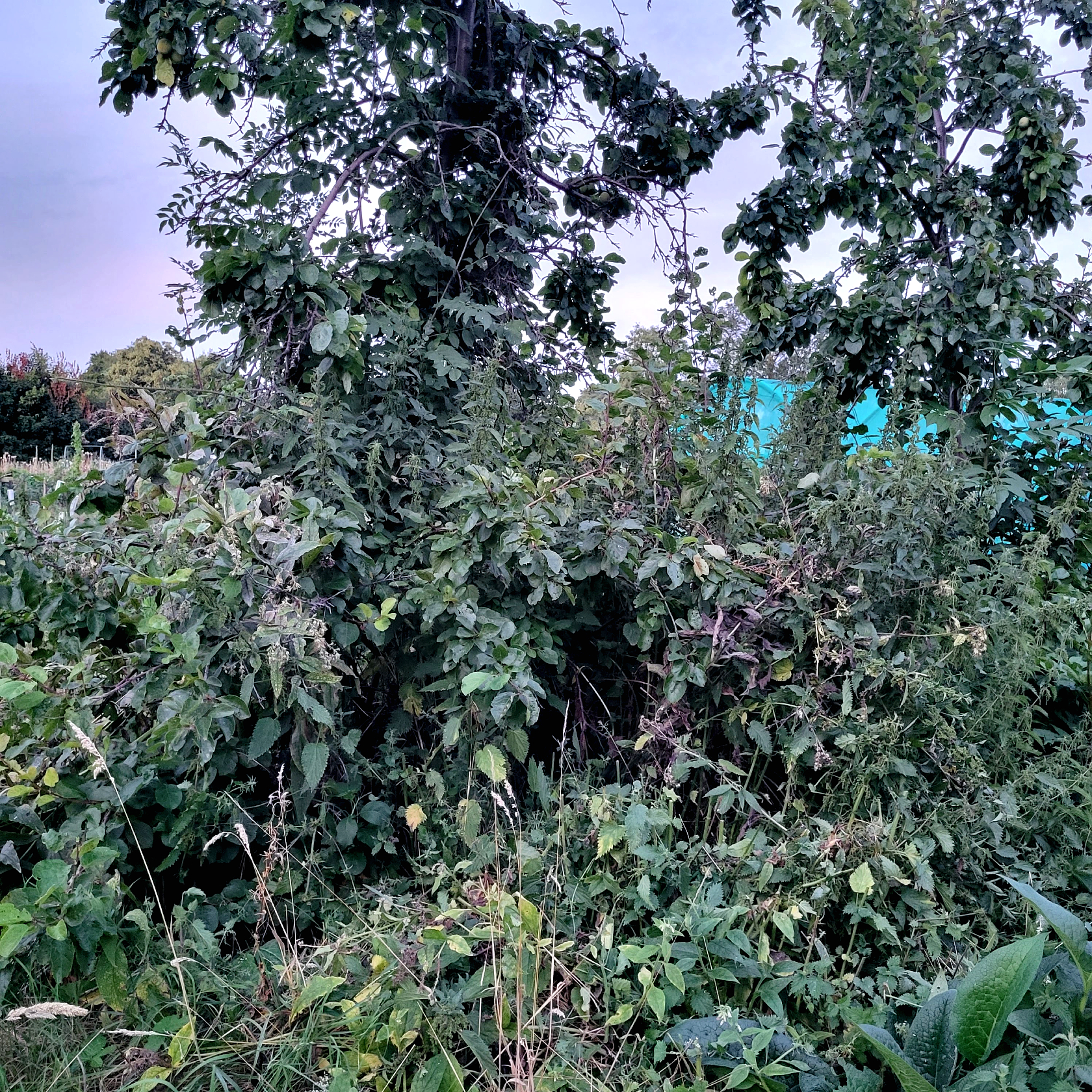 Where the grass is long, there remains an illusion of standing in a meadow. I have a longing for it to remain this way. In other areas I want to gently tame nature, to create pockets of order; and to allow for plum harvesting, and accessing the blackberries to the side of the allotment.